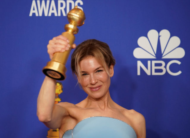 77th Golden Globe Awards – Photo Room – Beverly Hills, California, U.S., January 5, 2020 – Renee Zellweger poses backstage with her Best Performance by an Actress in a Motion Picture – Drama award for “Judy”. REUTERS/Mike Blake