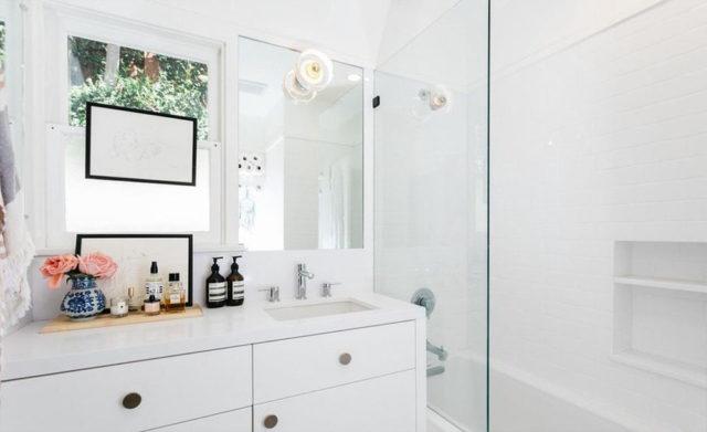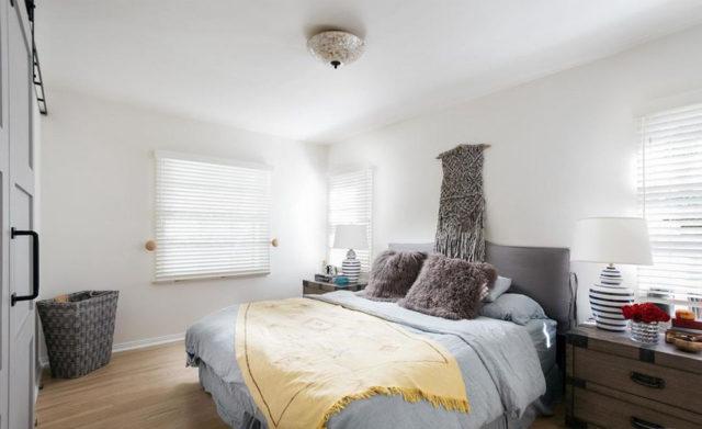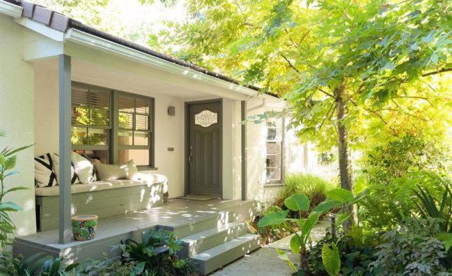 Behind gates that open to a graveled driveway and secreted behind a thick privet hedge amid a jungle-like tumble of leafy trees and dense foliage, the just over 1,200-square-foot bungalow has three bedrooms but just one, albeit snazzily renovated, bathroom.