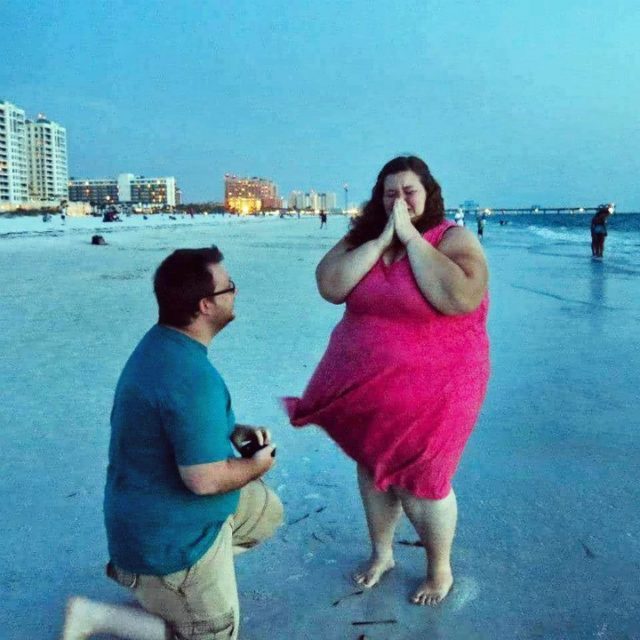 The two walked out onto the beach on a and as the 500 pound Lexi looked into the sea, Danny bent down on his knees before her proposed and she consented!