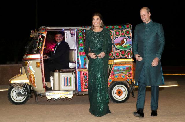 FILE PHOTO: Britain’s Prince William and Catherine, Duchess of Cambridge, arrive by Tuk Tuk as they attend a reception hosted by the British High Commissioner to Pakistan, Thomas Drew, at the Pakistan National Monument in Islamabad, Pakistan October 15, 2019. Chris Jackson/Pool via REUTERS/File Photo