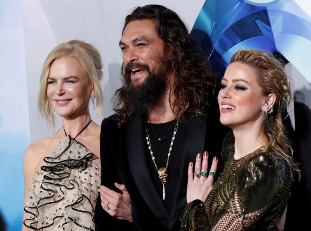 Cast members Momoa, Kidman and Heard pose at the premiere for “Aquaman” in Los Angeles