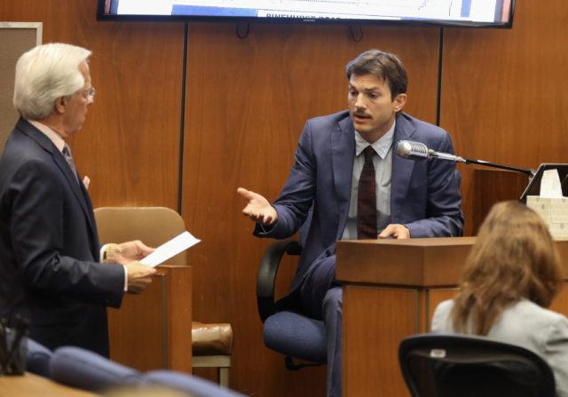Daniel Nardoni, defence attorney, questions actor Ashton Kutcher at the