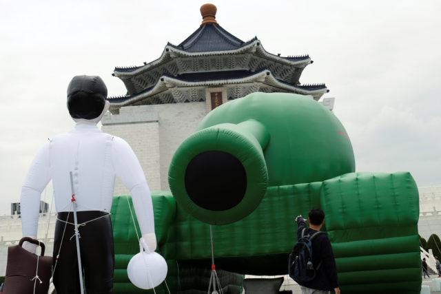 Giant balloons in the shape of a Chinese military tank and Tank Man are placed at the Liberty Square, ahead of June 4th anniversary of military crackdown on pro-democracy protesters in Beijing’s Tiananmen Square, in Taipei, Taiwan, May 21, 2019. REUTERS/Tyrone Siu
