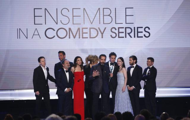 25th Screen Actors Guild Awards – Show – Los Angeles, California, U.S., January 27, 2019 – Cast member Tony Shaloub speaks on behalf of The Marvelous Mrs. Maisel film after winning Outstanding Ensemble in a Comedy Series. REUTERS/Mike Blake