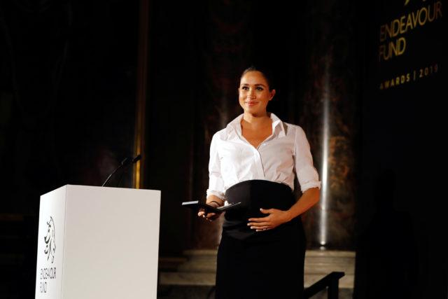 Britain’s Meghan, Duchess of Sussex presents the Celebrating Excellence Award to Nathan Forster during the Endeavour Fund Awards in the Drapers’ Hall in London, Britain February 7, 2019. Tolga Akmen/Pool via REUTERS