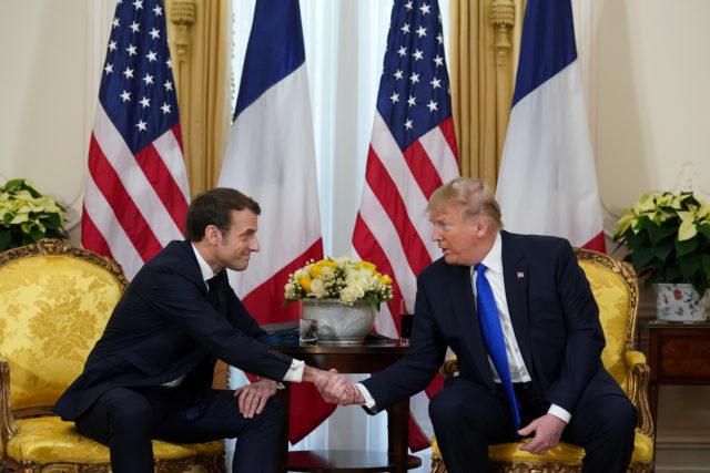 U.S. President Donald Trump and France’s President Emmanuel Macron shake hands as they meet, ahead of the NATO summit in Watford, in London, Britain, December 3, 2019. REUTERS/Kevin Lamarque