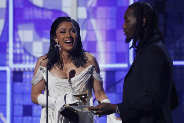 61st Grammy Awards – Show – Los Angeles, California, U.S., February 10, 2019 – Cardi B accepts the Best Rap Album award for “Invasion of Privacy” next to her husband Offset. REUTERS/Mike Blake