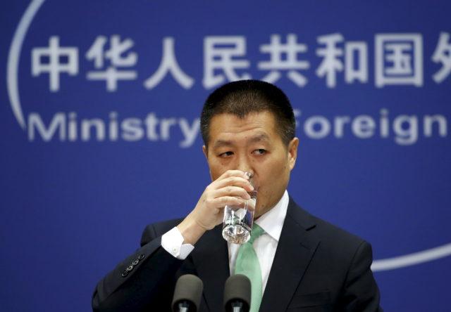 FILE PHOTO: Chinese Foreign Ministry spokesman Lu Kang drinks a cup of water at a regular news conference in Beijing, October 27, 2015. REUTERS/Kim Kyung-Hoon