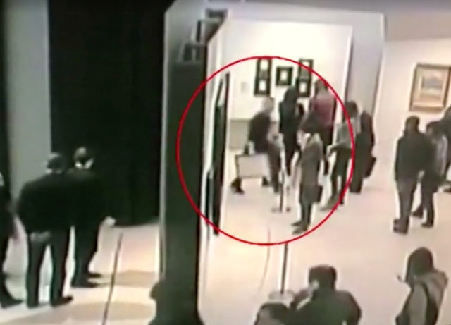 FILE PHOTO: A screen grab taken from video footage shows a man walking with a painting by prominent artist Arkhip Kuindzhi at Tretyakov art gallery in Moscow, Russia January 28, 2019. Reuters Tv/via REUTERS