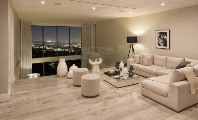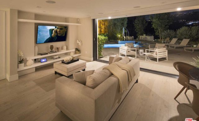 DemiLovato_LCLSE7There are four bedrooms, six bathrooms and several entertaining spaces in 5,564-square-feet plus off-street parking for more than half of a dozen cars. Interior spaces are airy and crisply contemporary with pale, bone-colored wide-plank hardwood floors, chalky white walls perfect for displaying artwork and great expanses of glass panels that slip into the walls for an effortless and classically Californian indoor/outdoor lifestyle.