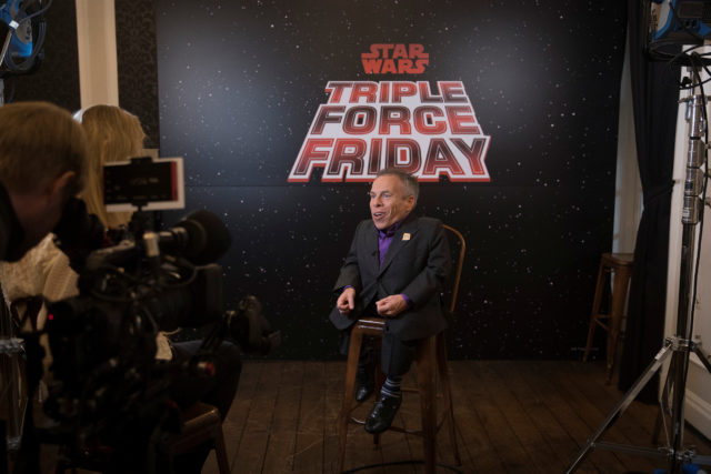 Actor Warwick Davis speaks during an interview at the announcement of new Star Wars products at Pinewood Studios, Iver Heath, Britain September 26, 2019. REUTERS/Simon Dawson