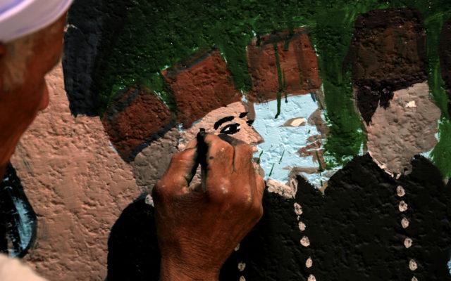 The artist Eid Al Salwaawi paints murals about the holy Kaaba and the rituals of the Hajj pilgrimage to Mecca, in Cairo, Egypt, July 17, 2019. Picture taken July 17, 2019. REUTERS/Hayam Adel