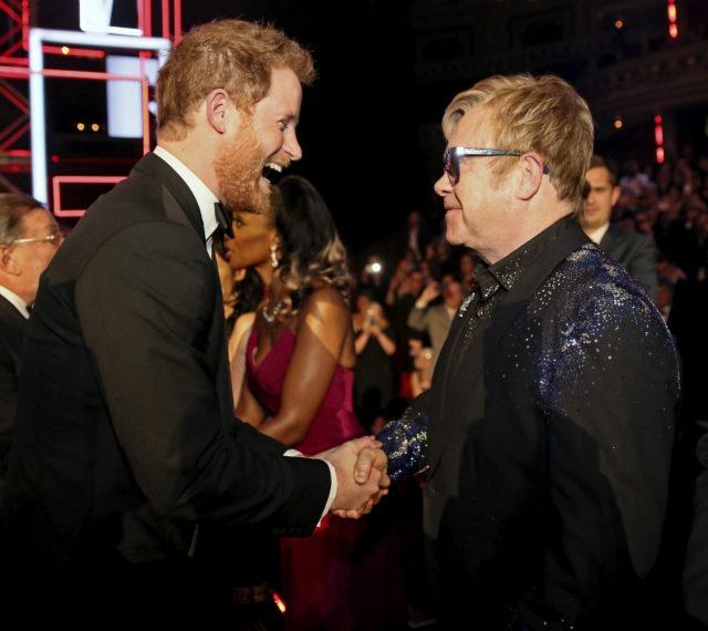 FILE PHOTO: Britain’s Prince Harry greets Elton John after the