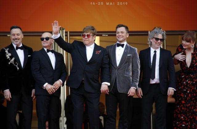 72nd Cannes Film Festival – Screening of the film “Rocketman” out of competition – Red Carpet Arrivals – Cannes, France, May 16, 2019. Elton John, director Dexter Fletcher, Bryce Dallas Howard, David Furnish, Bernie Taupin and Taron Egerton pose. REUTERS/Jean-Paul Pelissier