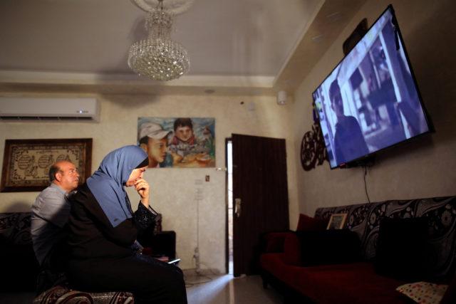 Hussein and Suha Abu Khdeir, whose son’s murder is the subject of the HBO series “Our Boys”, watch the show’s first two episodes in their East Jerusalem home August 18, 2019. REUTERS/Ammar Awad