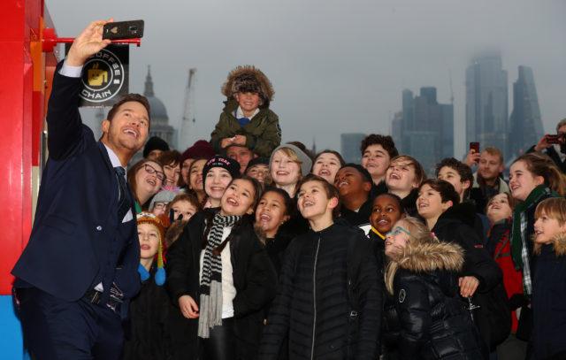 Actor Chris Pratt takes a selfie with fans during a photocall to promote the forthcoming film ‘Lego Movie 2’ in London, Britain February 1, 2019. REUTERS/Hannah McKay
