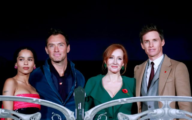 Actors Zoe Kravitz, Jude Law, Eddie Redmayne and writer J.K. Rowling pose during the photocall for the world premiere of the film “Fantastic Beasts: The Crimes of Grindelwald” in Paris, France, November 8, 2018. REUTERS/Gonzalo Fuentes