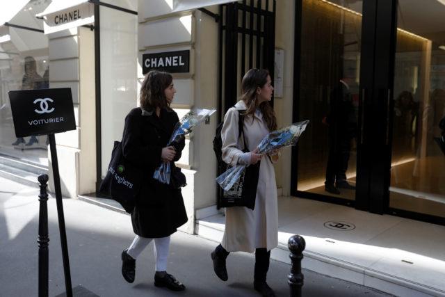 Women hold white roses as they arrive outside the Chanel fashion boutique after news that German haute-couture designer Karl Lagerfeld, artistic director at Chanel and an icon of the global fashion industry for over half a century, has died, aged 85, in Paris, France, February 19, 2019. REUTERS/Charles Platiau