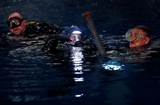 Divers are pictured in the underwater cinema studio “Lites” during the shooting of a movie in the Brussels suburb of Vilvoorde, Belgium, January 29, 2019. REUTERS/Francois Lenoir