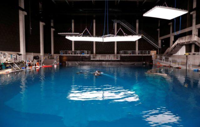 Underwater cinema studio “Lites” is pictured in the Brussels suburb of Vilvoorde during the shooting of a movie, Belgium, January 29, 2019. REUTERS/Francois Lenoir