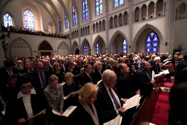 Family and friends attend a funeral service for former President George H.W. Bush at St. Martin’s Episcopal Church Thursday, Dec. 6, 2018, in Houston. David J. Phillip/Pool via REUTERS