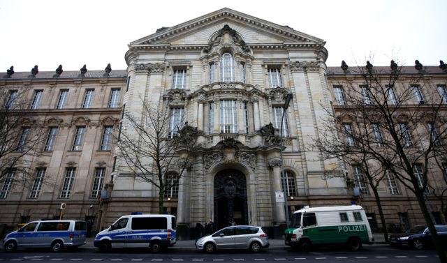Police vehicles park in front of the building as suspects appear in a regional court in Berlin, Germany, January 10, 2019, accused of the 2017 theft of a 100 kg (220lb) Canadian “Big Maple Leaf” gold coin from Berlin’s Bode Museum. REUTERS/Fabrizio Bensch