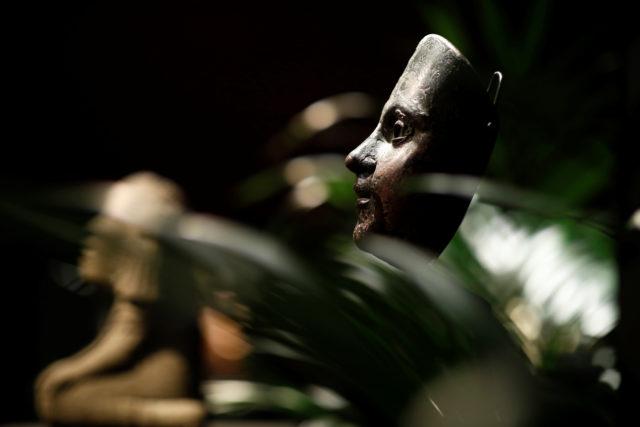 A dancing mask with the face of an angel, one of pre-Columbian artefacts, is presented to the press at Drouot auction house in Paris, France, September 18, 2019. REUTERS/Benoit Tessier