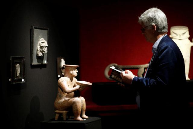 A female statue showing a dignitary, one of pre-Columbian artefacts, is presented to the press at Drouot auction house in Paris, France, September 18, 2019. REUTERS/Benoit Tessier