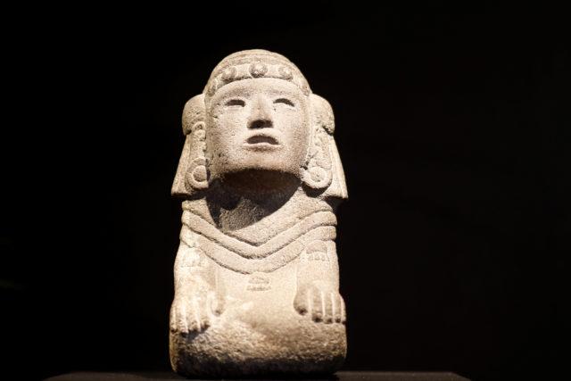 A stone kneeling figure of the Aztec water goddess Chalchiuhtlicue,