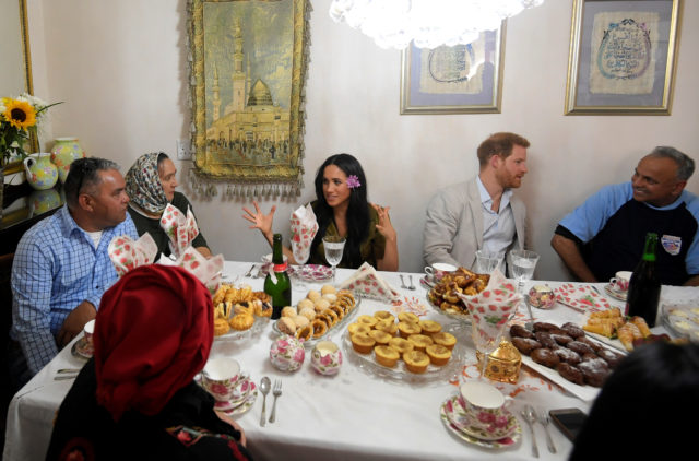 The Duke and Duchess of Sussex, Prince Harry and his wife Meghan, speak with family members whilst tea is served in a house in the Bo Kaap district of Cape Town, South Africa, September 24, 2019. REUTERS/Toby Melville/Pool