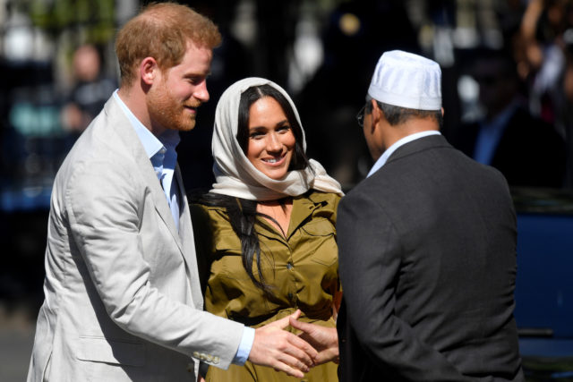 The Duke and Duchess of Sussex, Prince Harry and his wife Meghan, are welcomed at Auwal Mosque, the first and oldest mosque in South Africa, in the Bo Kaap district of Cape Town, South Africa, September 24, 2019. REUTERS/Toby Melville