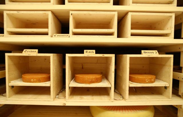 Maturing wheels of cheese are pictured in the K3 cellar