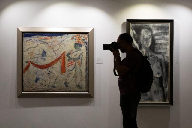 A journalist takes photos of artworks once part of billionaire jeweller Nirav Modi’s collection ahead of their auction at a gallery in Mumbai, India, March 25, 2019. REUTERS/Danish Siddiqui