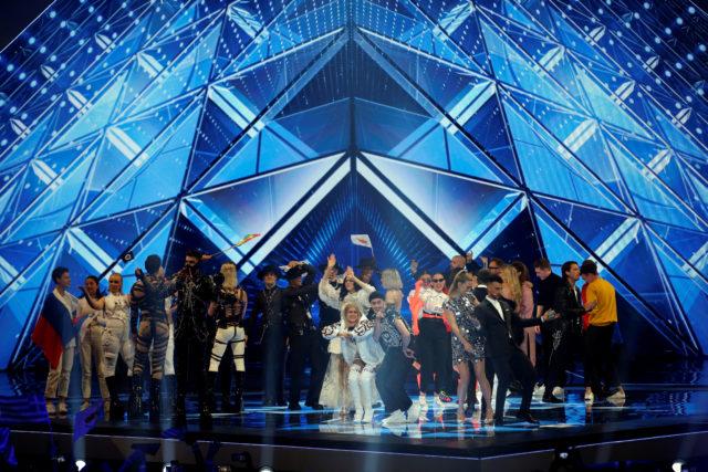Performers from countries that qualified to the final of the 2019 Eurovision Song Contest gather on stage at the end of the first semi final session in Tel Aviv, Israel May 15, 2019. REUTERS/Ronen Zvulun