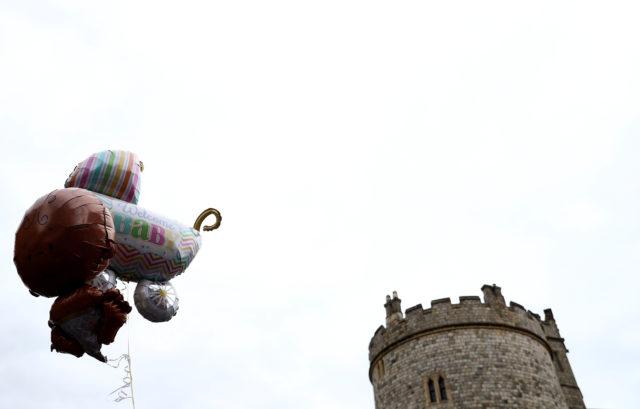 A balloon depicting a baby carriage is seen outside Windsor Castle after Britain’s Meghan, the Duchess of Sussex gave birth to a boy, in Windsor, Britain May 6, 2019. REUTERS/Hannah McKay