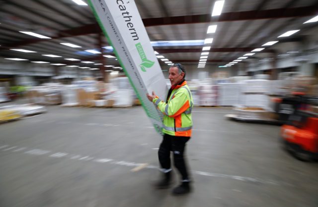 An employee of German postal and logistics group Deutsche Post DHL hand-carries freight at a DHL freight logistics centre located near the crossroads of Germany, France and Luxembourg in Sehlem, Germany, December 12, 2018. REUTERS/Wolfgang Rattay