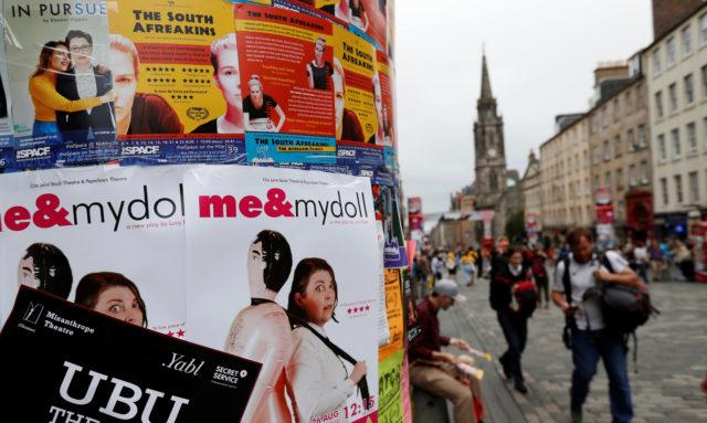 Flyers stuck to a pillar are seen on The Royal Mile, in Edinburgh, Scotland, Britain, August 1, 2019. REUTERS/Russell Cheyne
