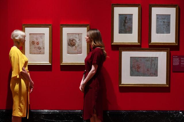 Royal Collection Trust staff pose beside some of Leonardo Da Vinci’s anatomical studies at A Life in Drawing, the largest exhibition of Leonardo’s work in more than 65 years, at The Queen’s Gallery, Buckingham Palace in London, Britain, May 23, 2019. REUTERS/Dylan Martinez