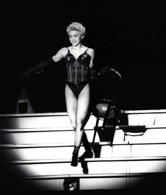 FILE PHOTO: Madonna performs her song “Open Your Heart” before about 45,000 Japanese fans at the KoraKuen Ball Park in Tokyo June 21, 1987. REUTERS/Shunsuke Akatsuka/File Photo