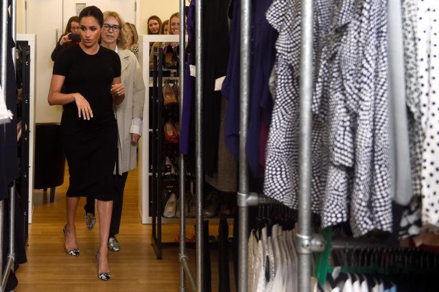 Meghan, the Duchess of Sussex, walks through racks of clothes with Lady Juliet Hughes-Hallett, during her visit at Smart Works charity in West London, Britain, January 10, 2019. REUTERS/Clodagh Kilcoyne/Pool