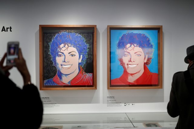 Acrylic and silkscreen ink on linen portraits by Andy Warhol are displayed during a press preview of the exhibition “On the Wall” dedicated to singer Michael Jackson at the Grand Palais in Paris, France, November 21, 2018. REUTERS/Benoit Tessier