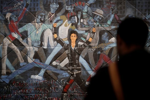 An artwork by Faith Ringgold called “Who’s Bad?” is displayed during a press preview of the exhibition “On the Wall” dedicated to singer Michael Jackson at the Grand Palais in Paris, France, November 21, 2018. REUTERS/Benoit Tessier