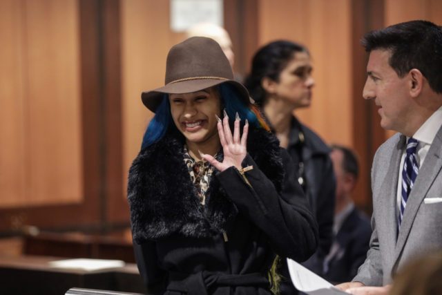 Singer Cardi B waves during her arraignment at Queens County Criminal Court in the Queens Borough of New York, U.S., December 7, 2018. Stephen Yang/Pool via Reuters
