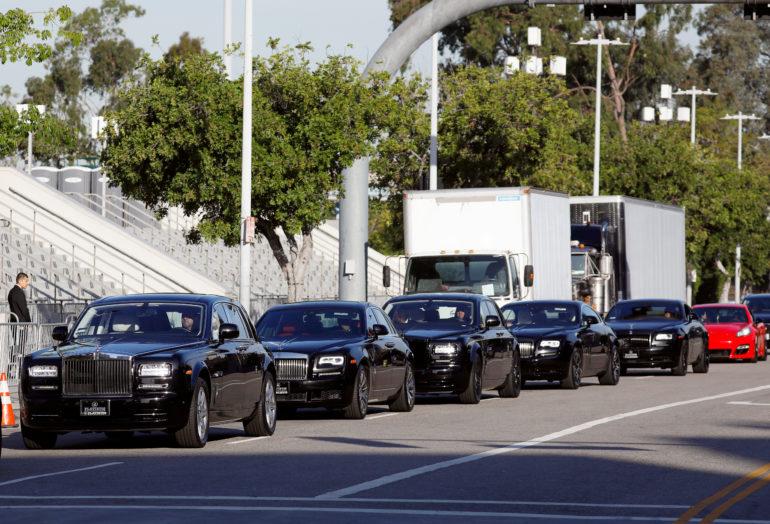 The 21,000-capacity Staples Center, a sports and pop concert venue, was packed with fans wearing white and blue for the three-hour memorial. It was followed by a 25-mile (40-km) procession through the streets of south Los Angeles.