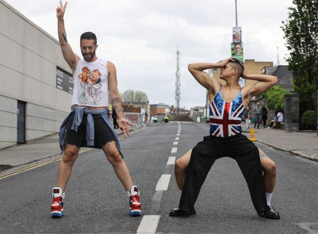 Sergio Guiterrez and Adolf Canazales from Barcelona pose outside Croke Park ahead of tonight’s opening concert for the Spice Girls reunion tour in Dublin, Ireland May 24, 2019. REUTERS/Lorraine O’Sullivan