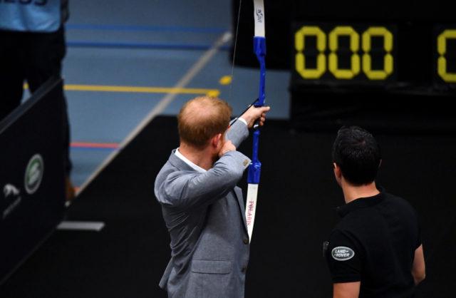 Britain’s Prince Harry performs archery during the official launch of the one year countdown to the Invictus Games The Hague 2020, in The Hague, Netherlands, May 9, 2019. REUTERS/Dylan Martinez