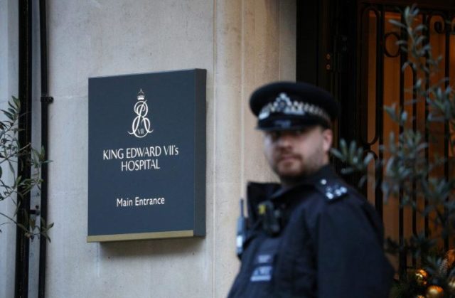 A police officer stands guard at the main entrance of the King Edward VII hospital where Prince Philip was admitted in London, Britain, December 20, 2019. REUTERS/Tom Nicholson NO RESALES. NO ARCHIVES.