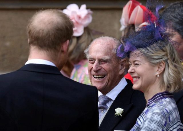 FILE PHOTO: Britain’s Prince Philip, Duke of Edinburgh talks to Prince Harry as they leave after the wedding of Lady Gabriella Windsor and Thomas Kingston at St George’s Chapel, in Windsor Castle, near London, Britain May 18, 2019. Steve Parsons/Pool via REUTERS/File Photo