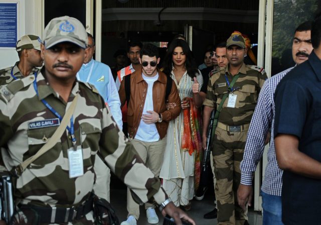 Bollywood actress Priyanka Chopra and singer Nick Jonas arrive at