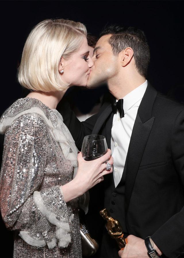 After learning he had won the coveted prize for best actor for his portrayal of Freddie Mercury in “,” Malek kissed his girlfriend and co-star, Lucy Boynton, who plays Mercury’s ex-fiancée Mary Austin in the film.